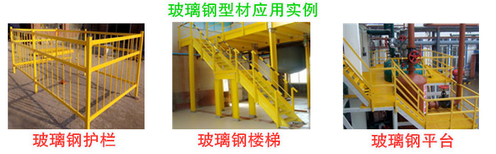 作為型材類產品,一般很少單獨使用。如玻璃鋼方管、圓管、橋架等都是作為配件在工程內使用。比較常見的玻璃鋼型材案例有玻璃鋼護欄玻璃鋼樓梯玻璃鋼平臺等。