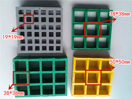 在章節玻璃鋼格柵板的型號尺寸中介紹過,由于生產工藝屬于模塑制作工藝,所以格柵板的長寬尺寸都是固定的,如常用的玻璃鋼格柵板長寬尺寸以1.22m*3.66m、1m*4m、1.25m*4.05m這三種為主。下面主要介紹的是玻璃鋼格柵板孔徑大小的區別與選擇。