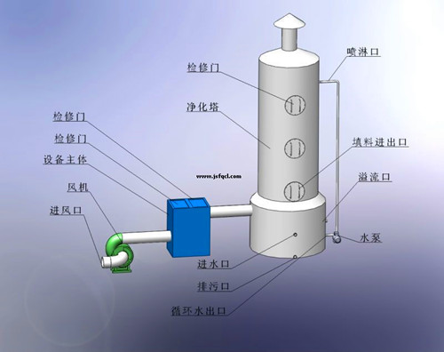 利用惡臭、有機廢氣中某些物質(zhì)易溶于水的特性,通過玻璃鋼離心風機使惡臭、有機廢氣成分直接與水接觸,從而溶解于水達到去除目的。適用于水溶性、有組織排放源的惡臭、有機廢氣。工藝簡單,管理方便,設備運轉(zhuǎn)費用低,但產(chǎn)生二次污染,需對洗滌液進行處理;凈化效率低,應與其他技術聯(lián)合使用,對有機廢氣處理效果差。